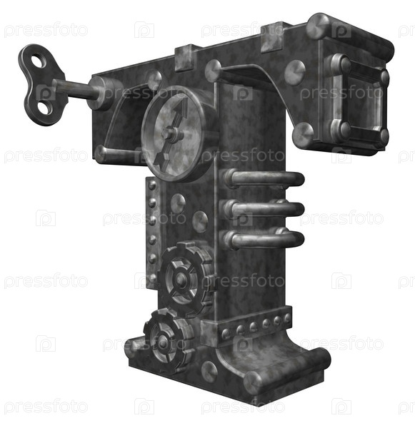 Стимпанк буква Т на белом фоне - 3d иллюстрация