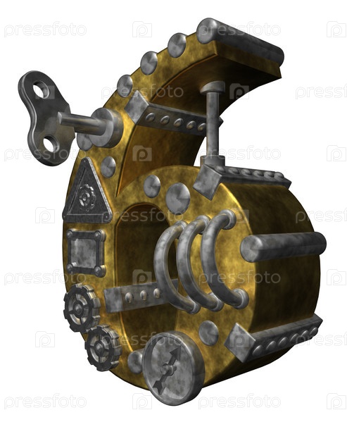 Стимпанк цифра шесть на белом фоне - 3d иллюстрация