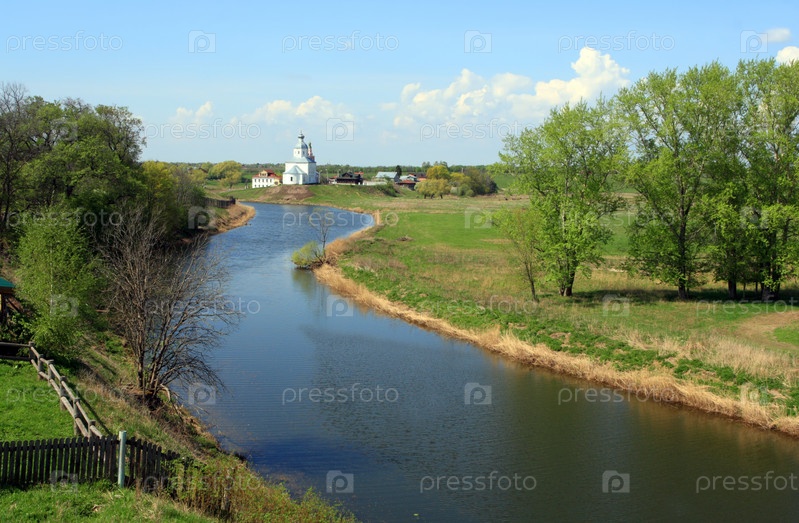 Суздаль. Вид на речку Каменка и Входо-Иерусалимскую и Пятницкую церковь