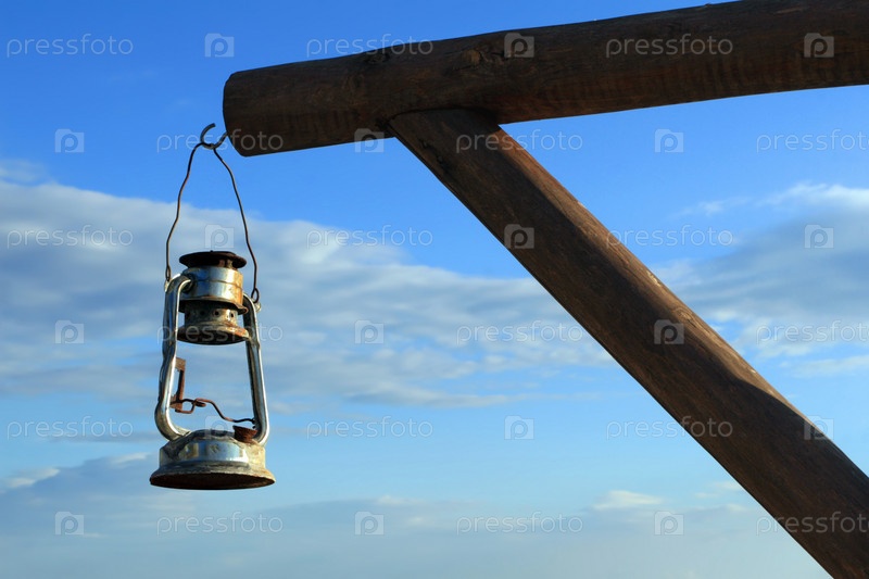 Старая керосиновая лампа на фоне неба