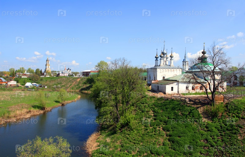 Суздаль. Вид на речку Каменка и Входо-Иерусалимскую и Пятницкую церковь