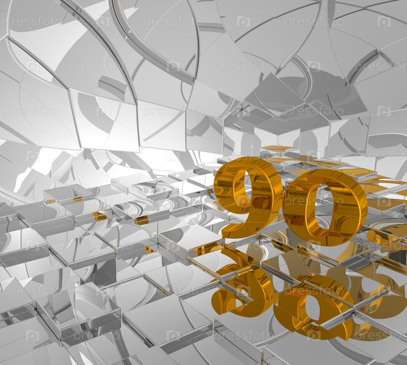 Кубический фон и золотая цифра девяносто. 3d Иллюстрация