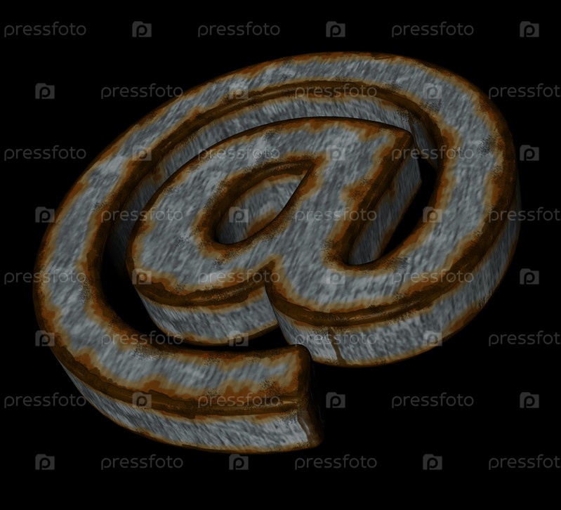 Ржавый символ электронной почты на черном фоне. 3d Иллюстрация