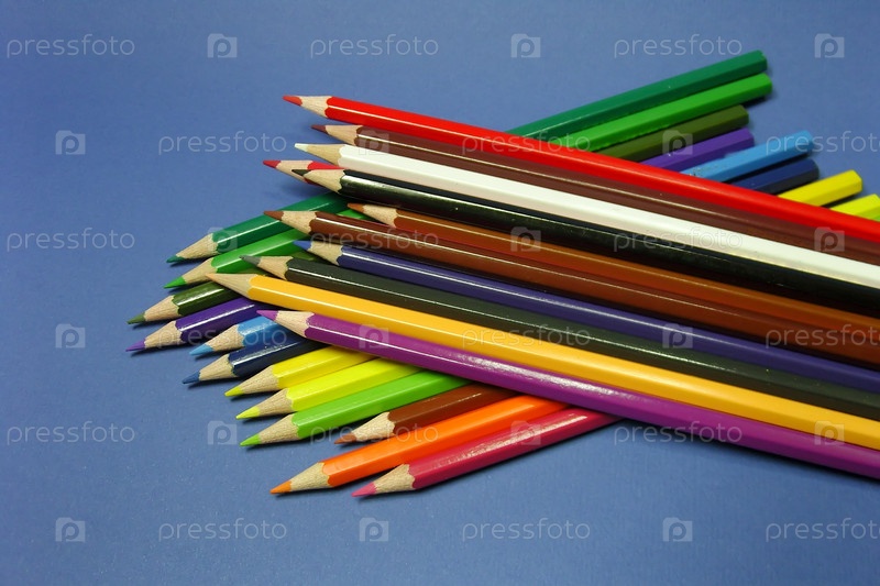 Цветные карандаши на синем фоне