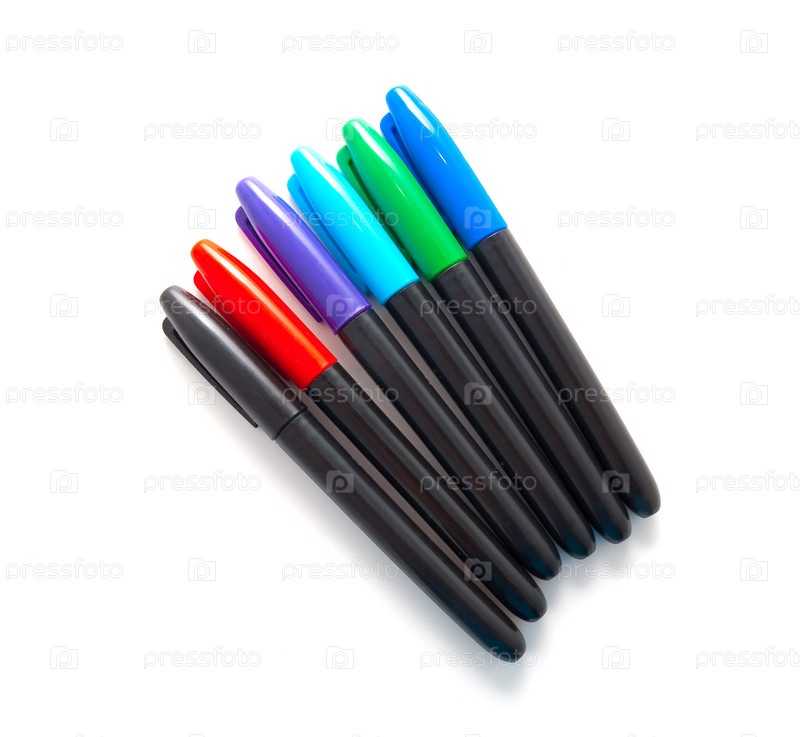 Набор разноцветных фломастеров на белом фоне
