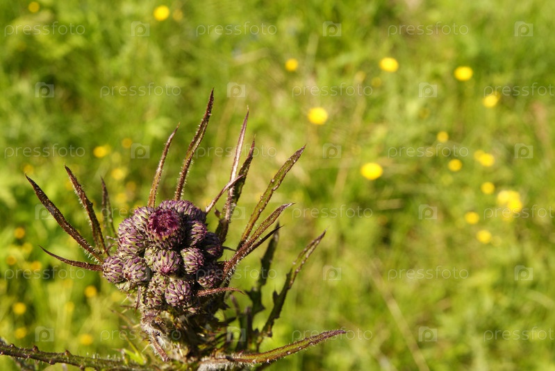 Репейник на фоне травы