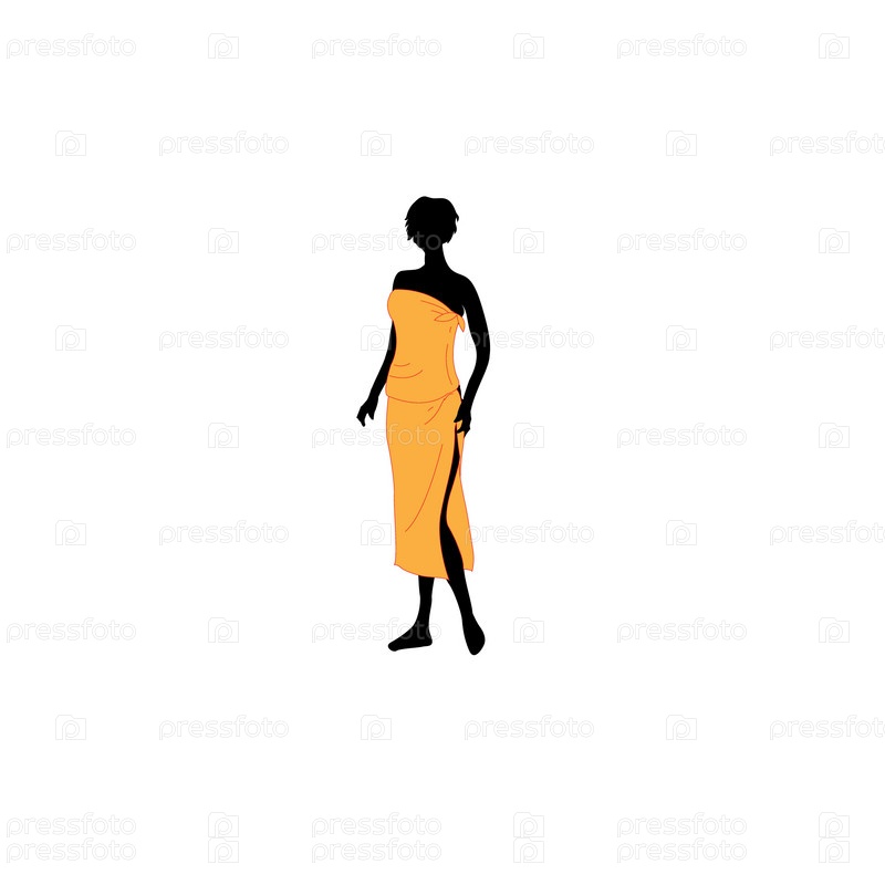Силуэт женщины в оранжевом платье, на белом фоне