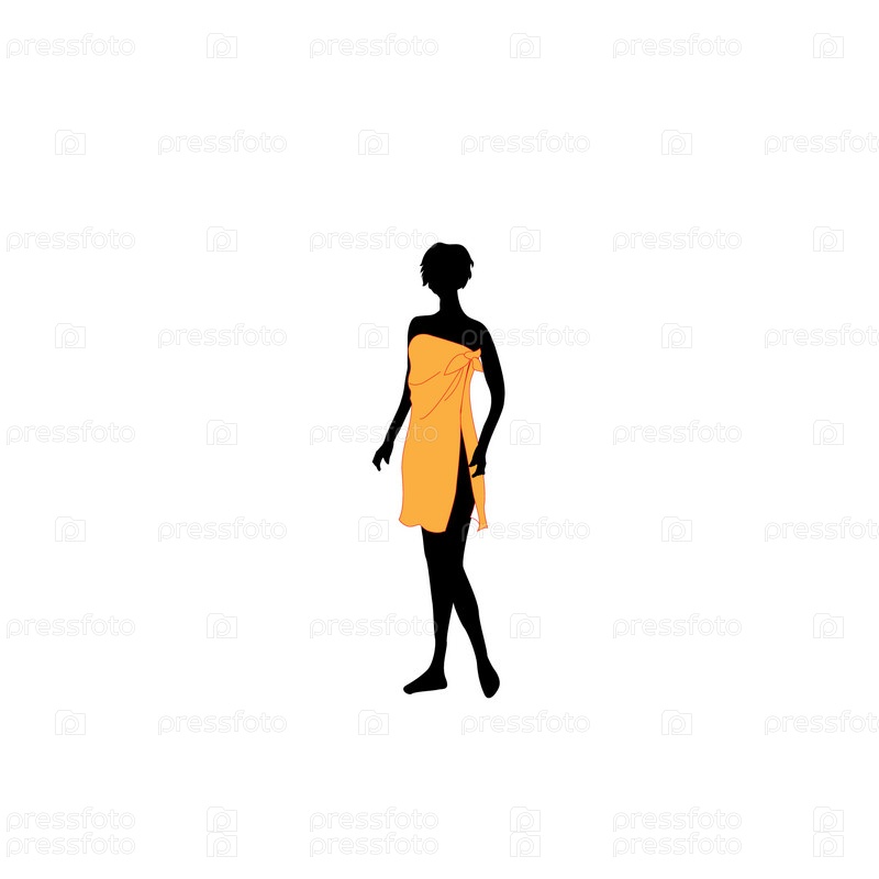 Силуэт женщины в оранжевом платье, на белом фоне