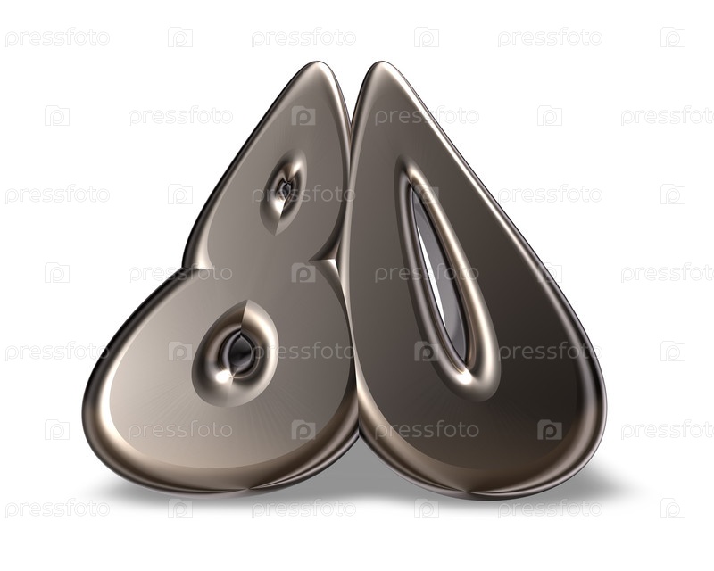 Металлическая цифра 80 на белом фоне - 3d иллюстрация