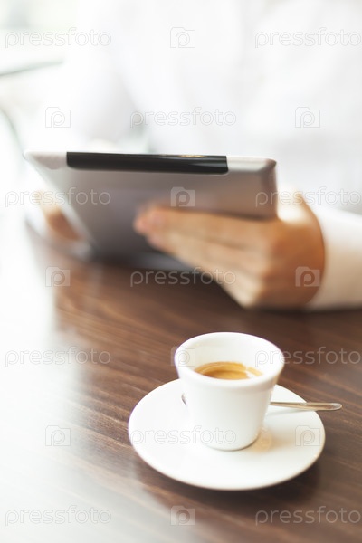 Человек читает новости на планшетном компьютере