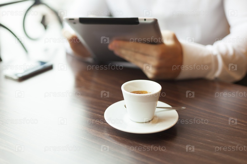 Человек читает новости на планшетном компьютере