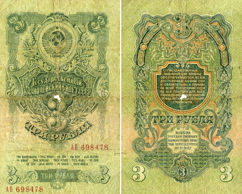 Советская купюра образца 1947 года - 3 рубля