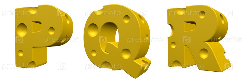 Буквы P, Q, R на белом фоне. 3d иллюстрация
