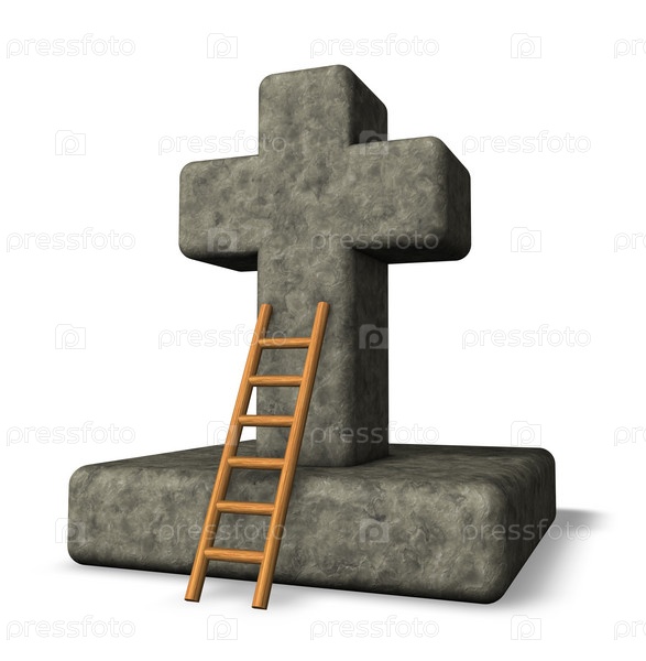 Лестница опирается на христианский крест. 3d Иллюстрация