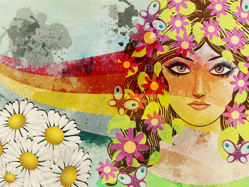 Гранж девушка с бабочками