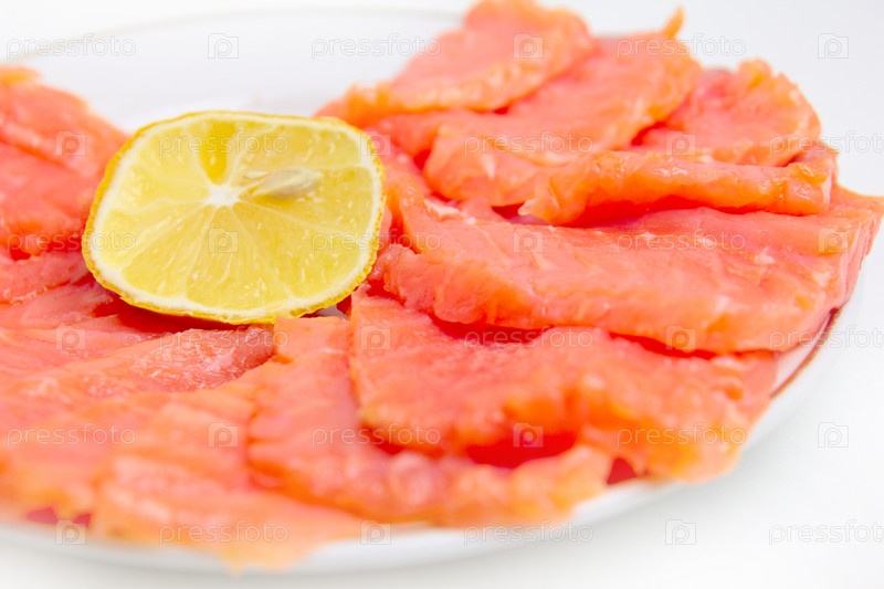 Красная рыба лосось с лимоном, деликатес