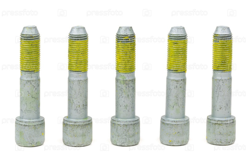 Пять болтов для автомобиля с желтым клеем на резьбе