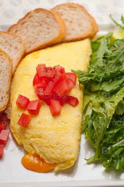 Сырный омлет с помидораями и салатом