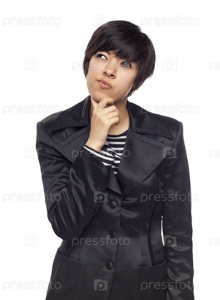 Задумчивая девушка смешанного происхождения смотрит вверх