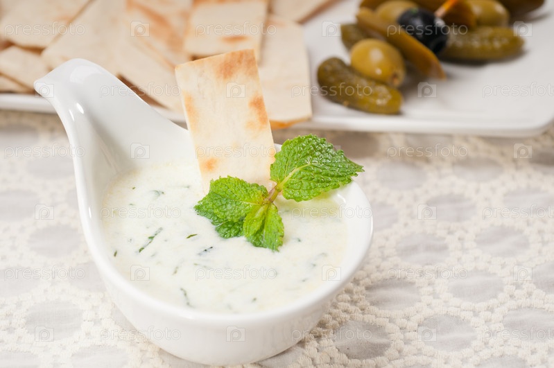 Греческий йогурт цацики и хлеб пита