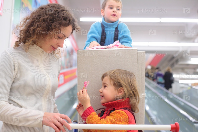 Мама в магазине с детьми
