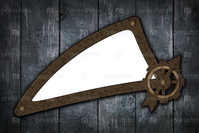 Элементы с местом для текста в стиле steampunk на деревянных досках. 3d иллюстрация