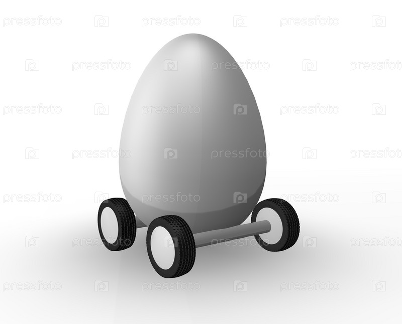 Пасхальное яйцо на колесах. 3d Иллюстрация