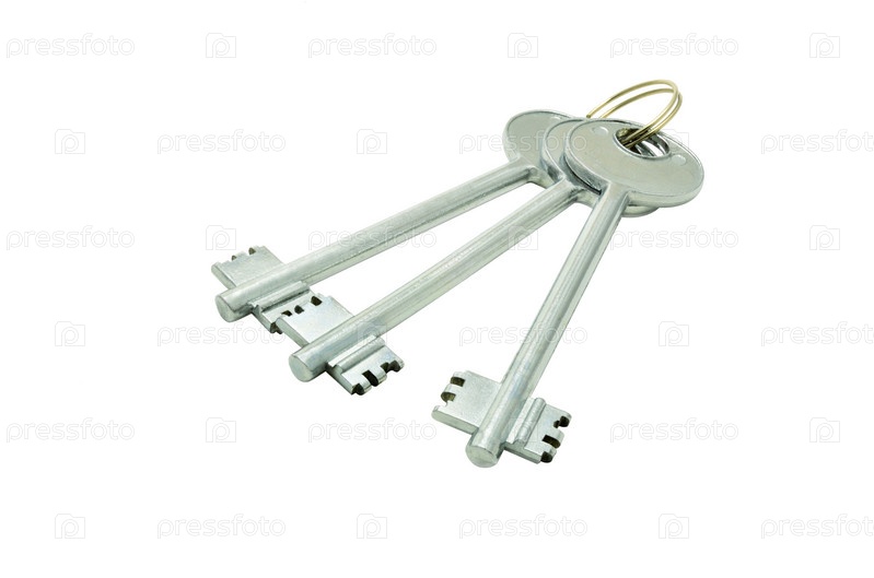 Три ключа на кольце, изолированные на белом фоне