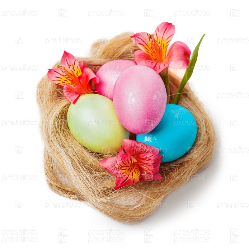 Пасхальные яйца в гнезда с цветами
