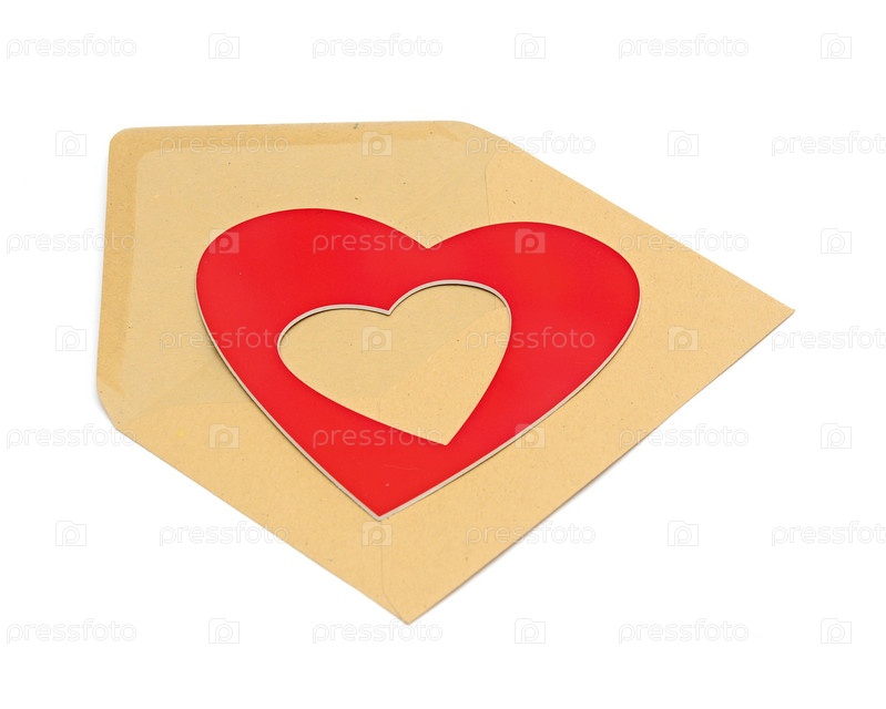 Коричневый бумажный конверт с красным сердцем