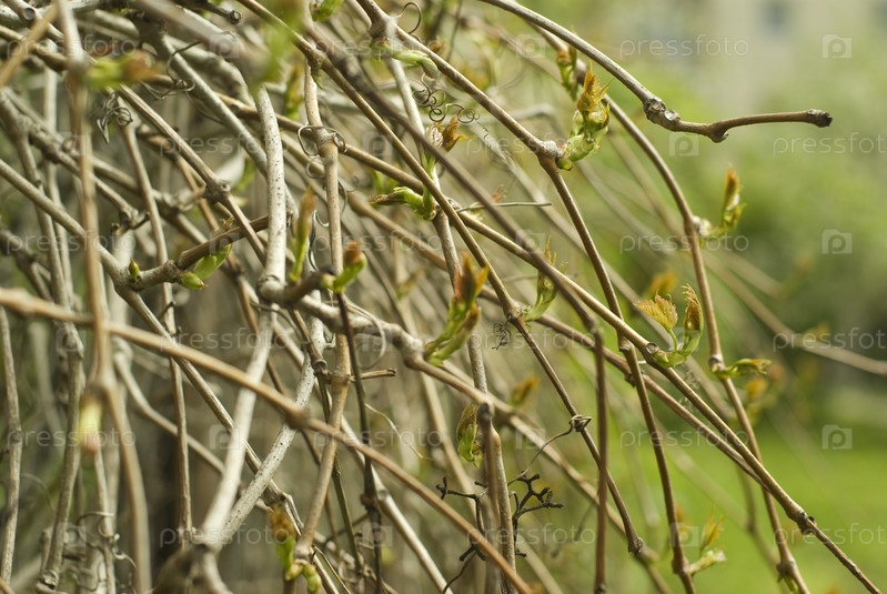 Ветки кустарника с распускающимися листочками