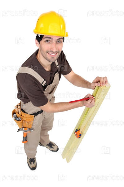 Плотник маркирует доску