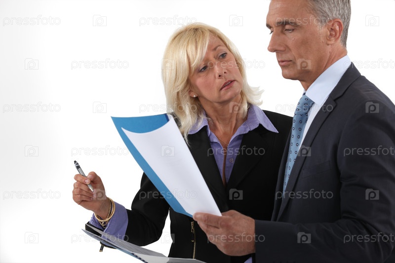 Пара деловых людей просматривает отчет