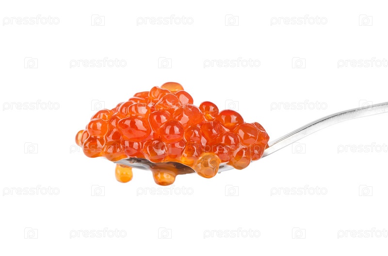 Ложка красной икры, изолированная на белом фоне