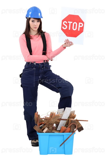 Женщина держит знак стоп