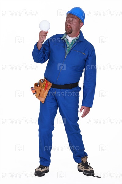 Мужчина, получивший удар электрическим током, смотрит на лампу