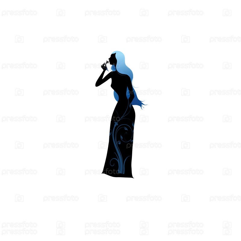 Силуэт женщины с голубыми волосами на белом фоне