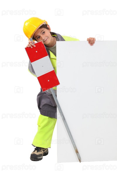 Маленький мальчик в костюме строительного рабочего