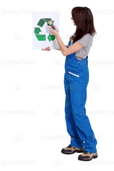 Маляр рисует знак утилизации