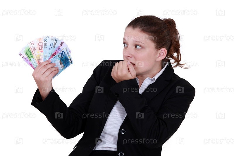 Деловая женщина держит веер банкнот