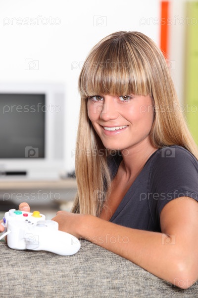Блондинка с контроллером для видео-игр