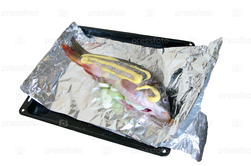 Сырой карп на фольге
