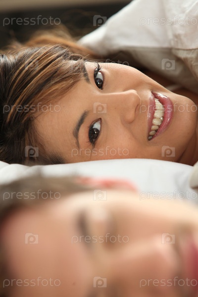 Женщина в постели со своим партнером