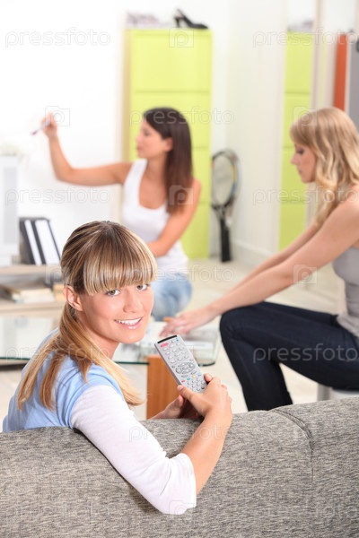 Девочки-подростки смотрят телевизор