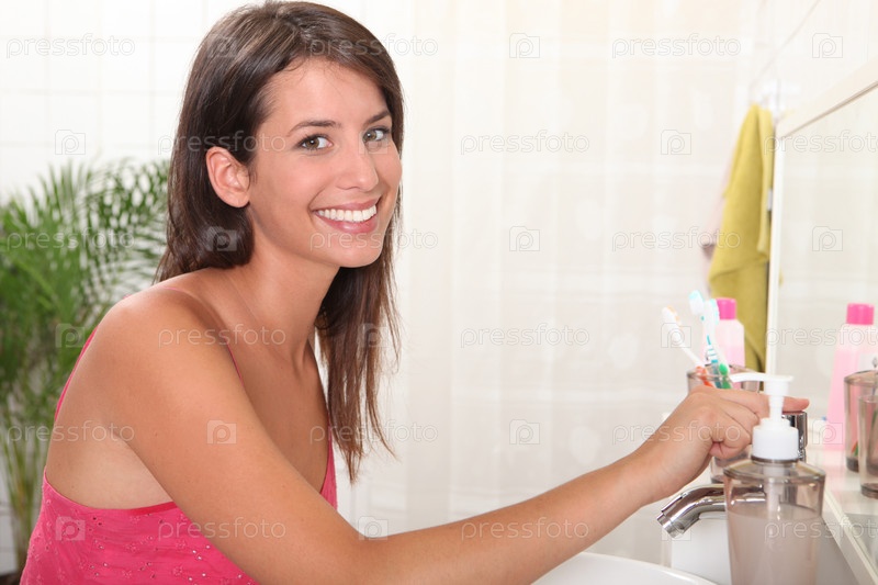 Молодая женщина с зубной щеткой