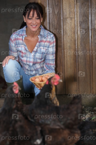 Женщина собирает яйца