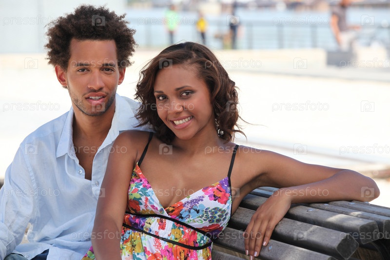 Пара сидит на скамейке