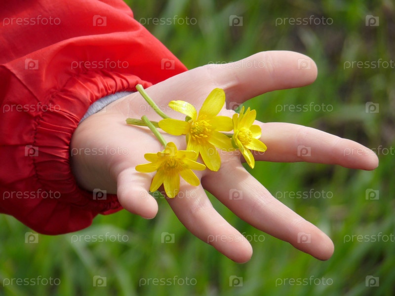 Цветки желтого цвета на ладони