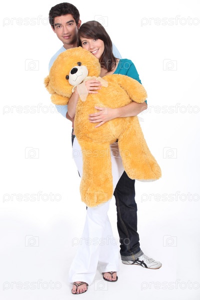 Портрет подростков с большим плюшевым медведем