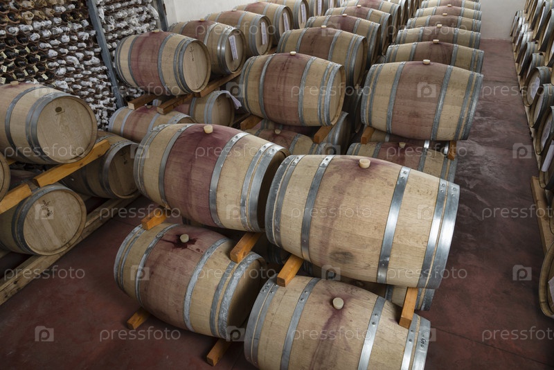 Италия, Сицилия, провинция Рагуза, деревянные бочки с вином в винном погребе